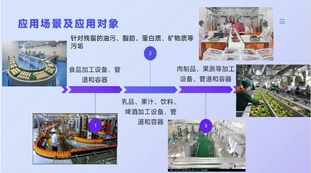 產(chǎn)品是一種能夠顯著增強(qiáng)設(shè)備表面重垢清洗效果的預(yù)處理清洗劑,富含氧化活性因子,提供氧化活力指標(biāo)來(lái)去除頑固附著污垢;與堿性清洗劑協(xié)同清洗,通過(guò)對(duì)污物的滲透、氧化、增加表面親水性等,強(qiáng)力剝離污垢,有效提高去污能力;同時(shí),產(chǎn)品添加綠色抑泡成分,可高效抑制管道中泡沫的產(chǎn)生,對(duì)于加工過(guò)程中殘留的蛋白質(zhì)和油污等重度污垢有良好的去除效果。