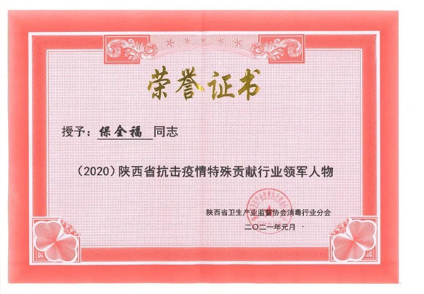 2021年1月獲得“陜西省抗擊疫情特殊貢獻行業(yè)領(lǐng)軍人物”;