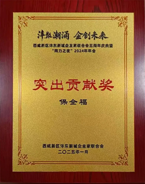 2025年1月獲得西咸新區(qū)灃東新城企業(yè)家聯(lián)合會“突出貢獻獎”。