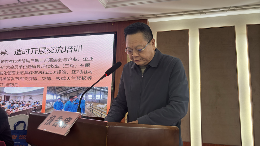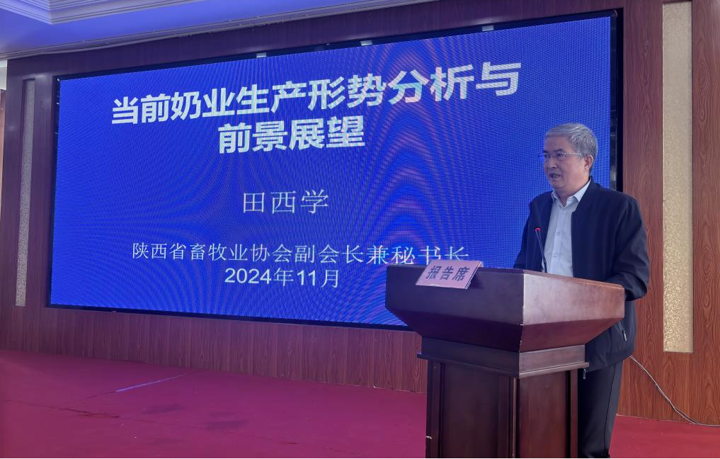 陜西省畜牧業(yè)協(xié)會副會長兼秘書長田西學(xué)作了奶業(yè)生產(chǎn)形勢分析與應(yīng)對策略報告。