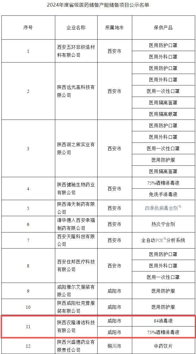 按照省工信廳、省財(cái)政廳和省藥監(jiān)局《關(guān)于組織開(kāi)展2024年省級(jí)醫(yī)藥儲(chǔ)備產(chǎn)能儲(chǔ)備項(xiàng)目申報(bào)工作的通知》要求,對(duì)擬列為2024年度省級(jí)產(chǎn)能儲(chǔ)備項(xiàng)目予以了公示。其中漢隆公司經(jīng)過(guò)多級(jí)相關(guān)部門(mén)審核,入選“2024年省級(jí)醫(yī)藥儲(chǔ)備企業(yè)”